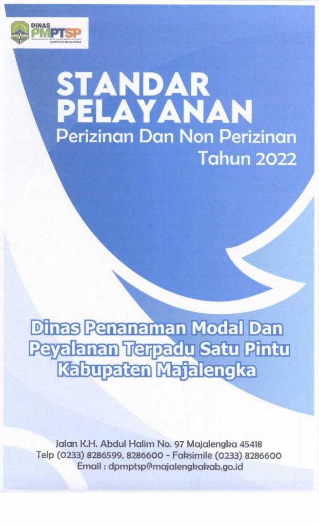 Berdasarkan Standar Pelayanan Publik, sesuai dengan pasal 21 UU No. 25 tahun 2009 tentang Pelayanan Publik, DPMPTSP Kabupaten Majalengka, meliputi :